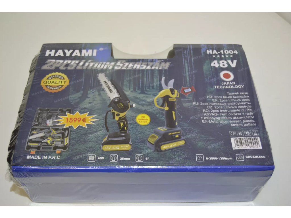 Aku set 2v1 pilka s automatickým mazáním + aku nůžky 48V v kufříku + 2 baterie a příslušenství