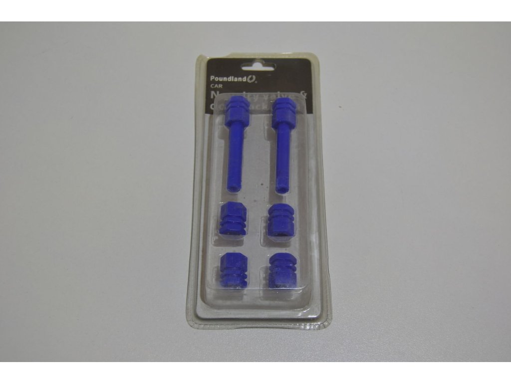 Balení obsahuje 4 ks čepiček na ventilky a 2 kusy krytek na na zamykací kolíky u dveří automobilu v modré barvě