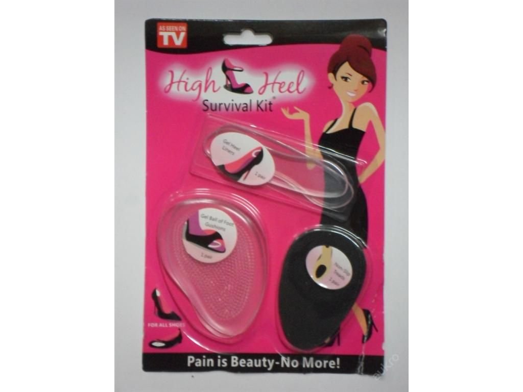 Balení obsahuje 2ks patních gelových vložek, 2ks gelových vložek pod chodidlo a 2ks protiskluzových vložek do lodiček.