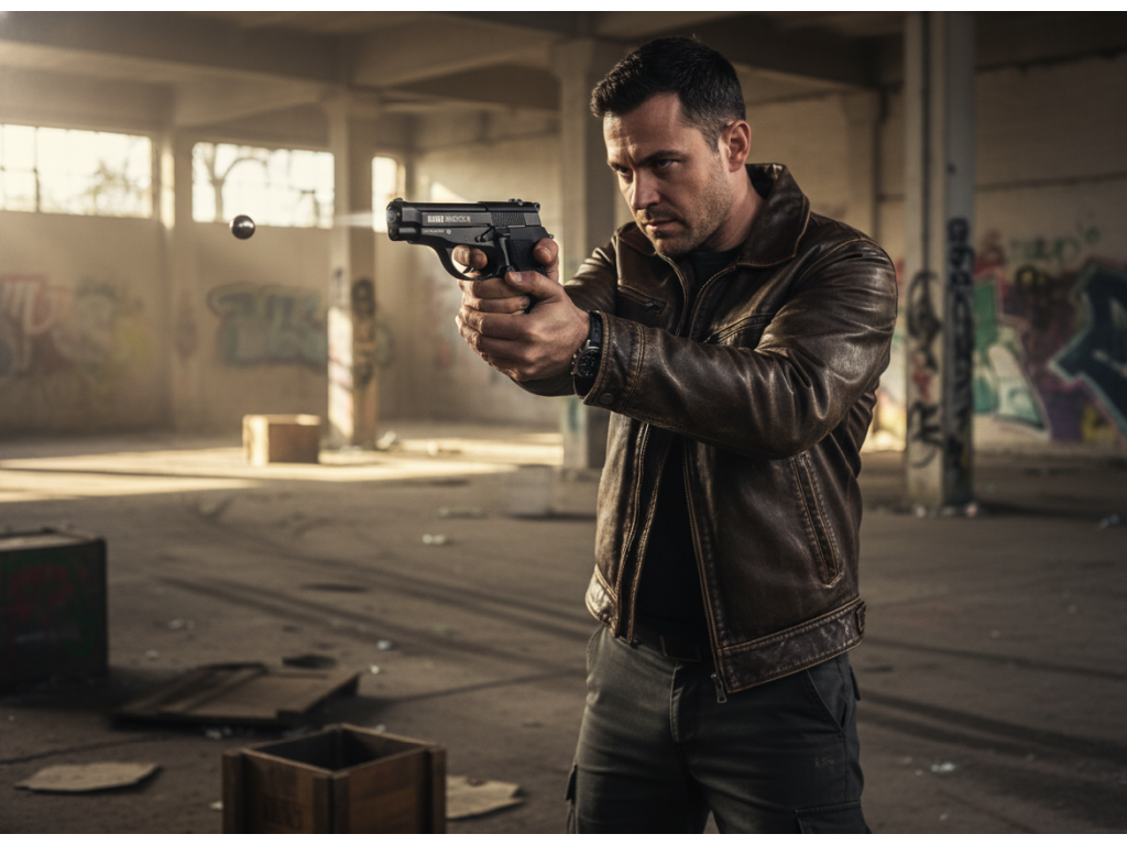- Realistický design připomínající klasickou poloautomatickou pistoli