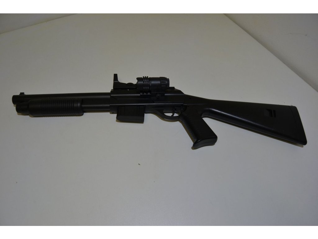 Kuličková puška vybavená modrým světlem
