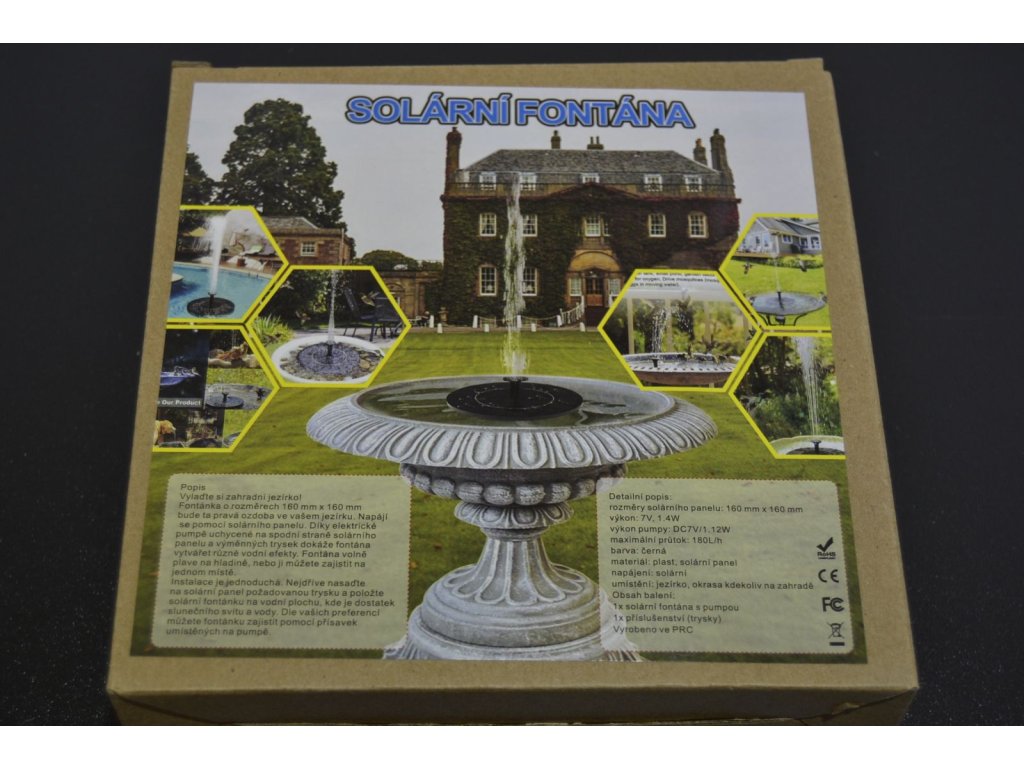 - Po 5 vteřinách přímého slunečního světla se automaticky zapne solární fontána.