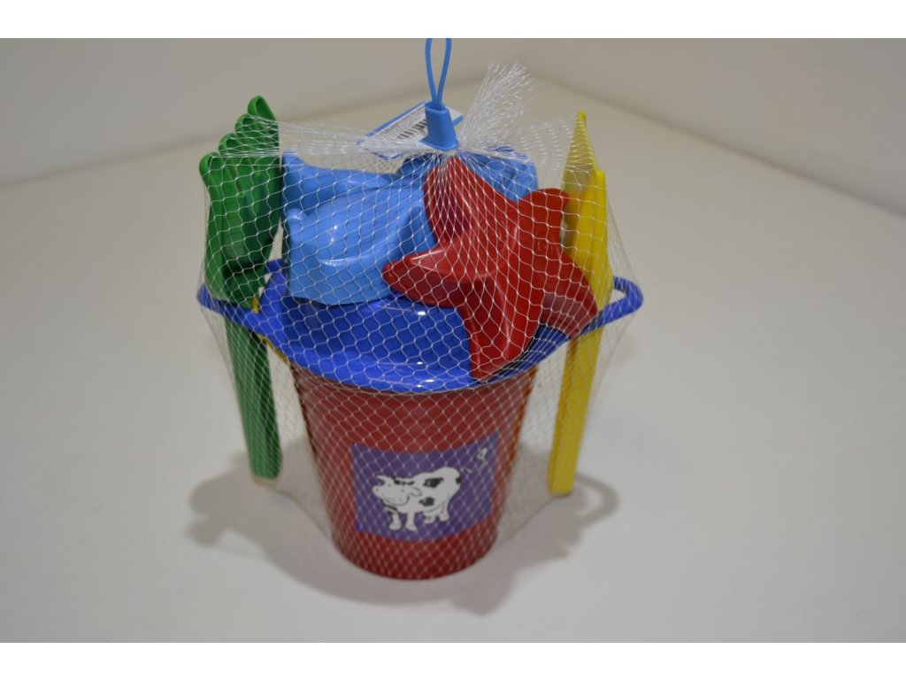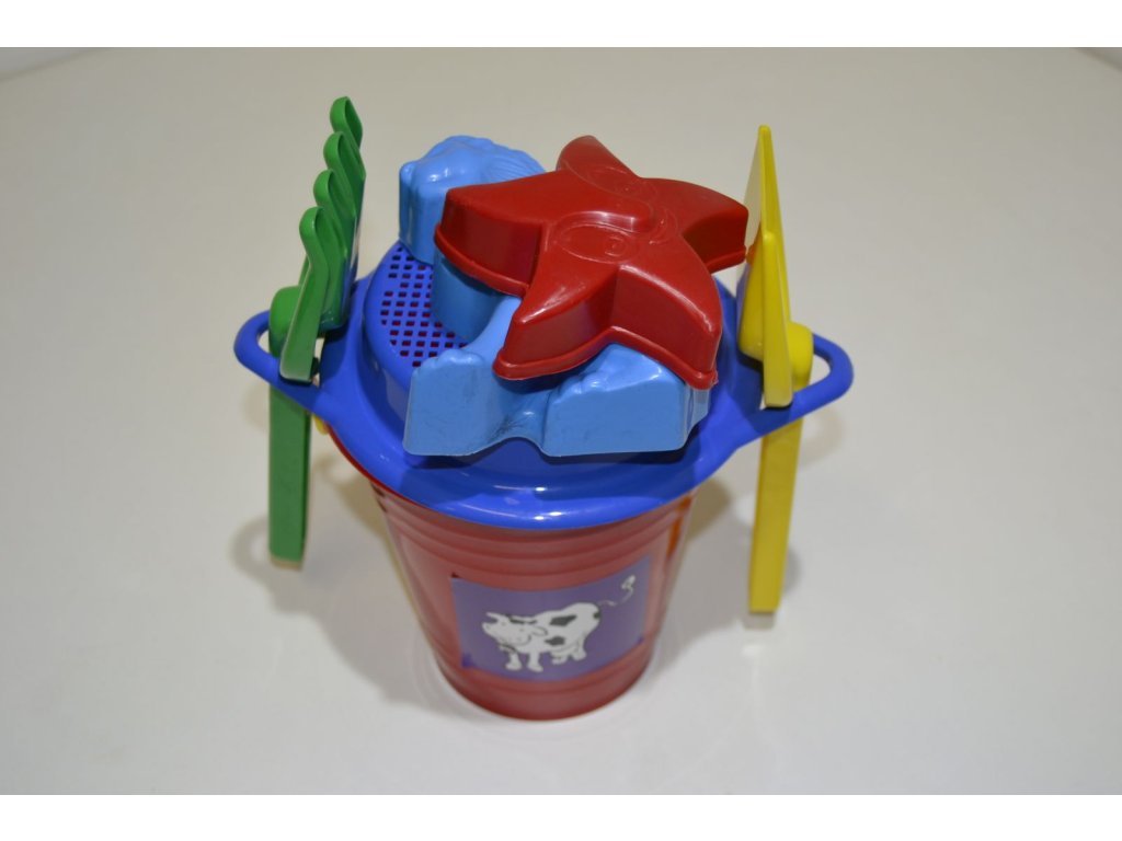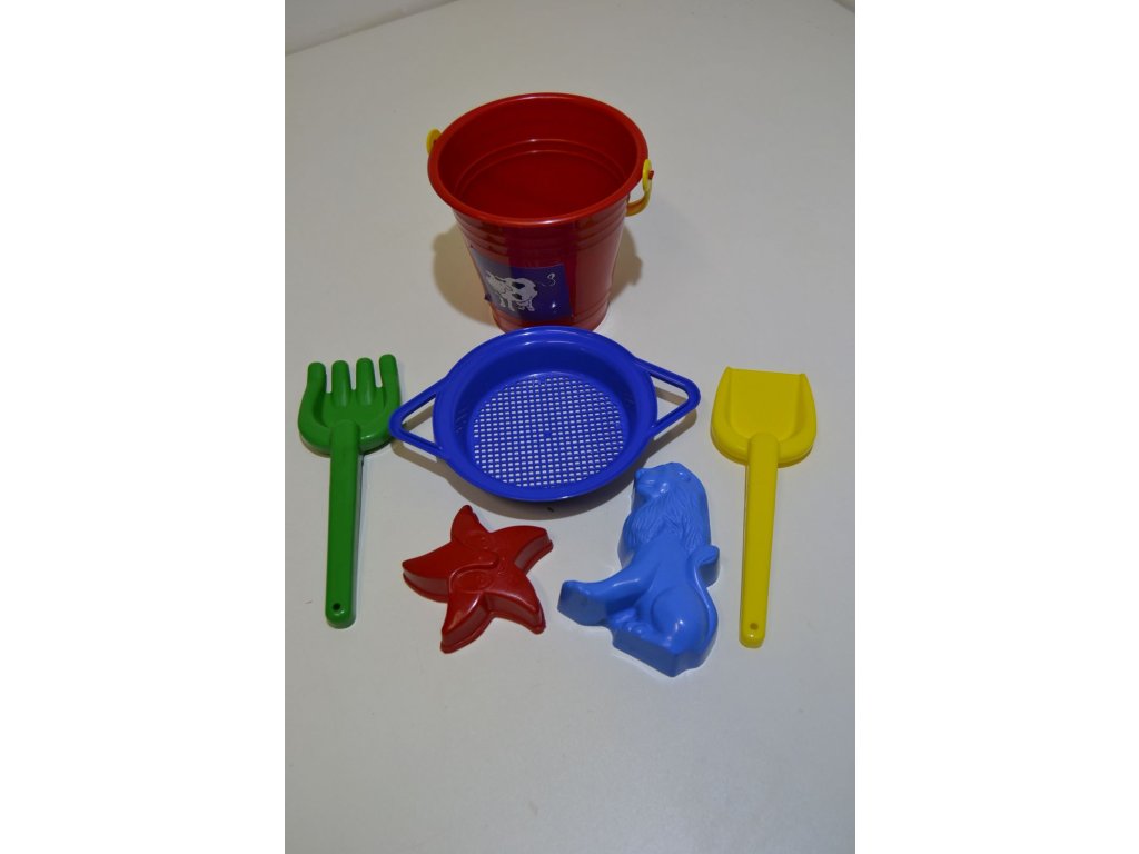 Obsahuje : kyblík s uchem o objemu cca 1l, 2 bábovičky, síto, hrabičky a lopatku