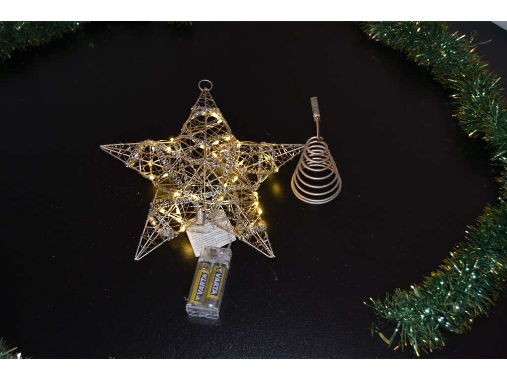 Vánoční osvětlení, drátěná hvězda na baterie 25cm, šampaň