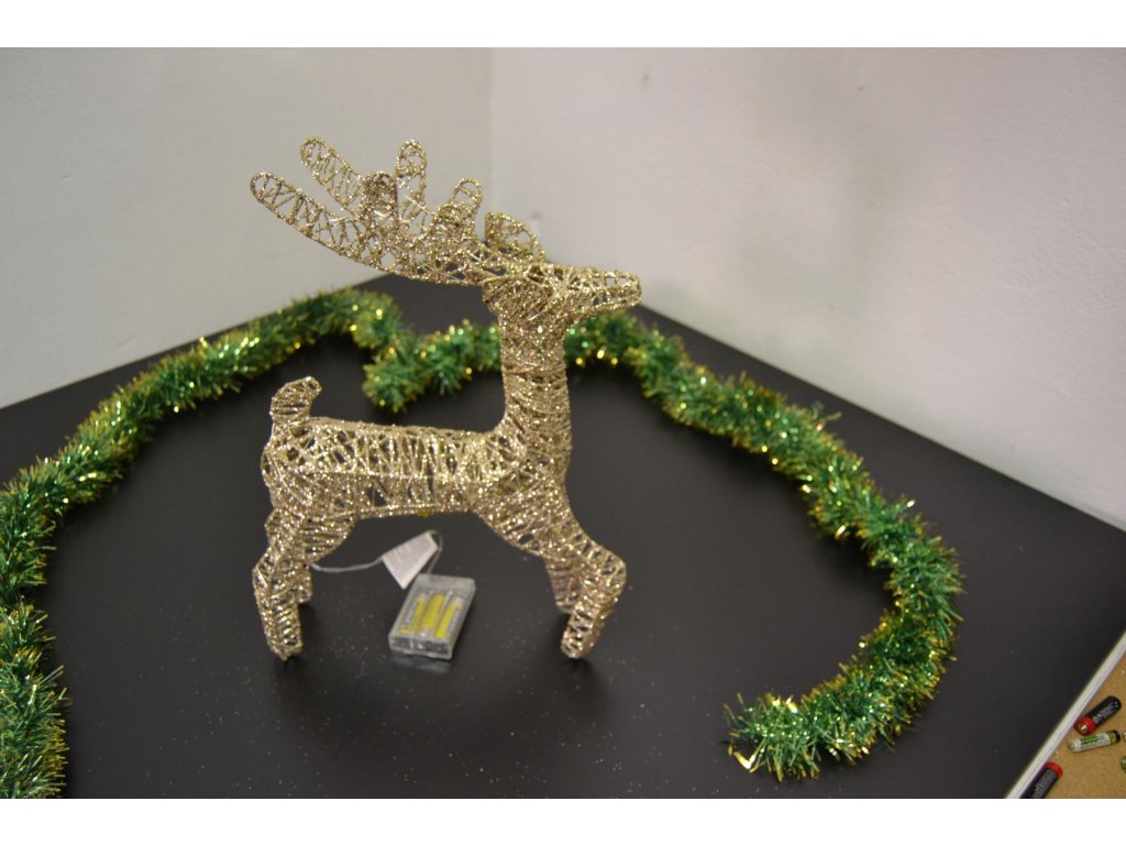 PRC Vánoční osvětlení, drátěný sob na baterie 40cm, šampaň