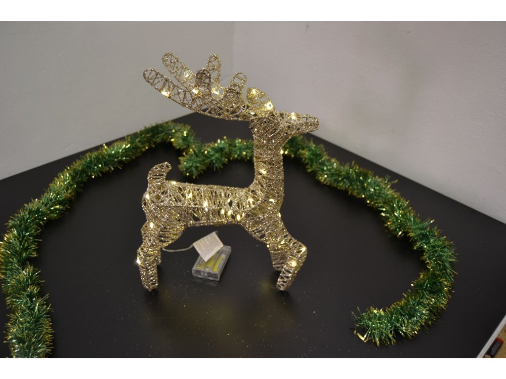 PRC Vánoční osvětlení, drátěný sob na baterie 50cm, šampaň