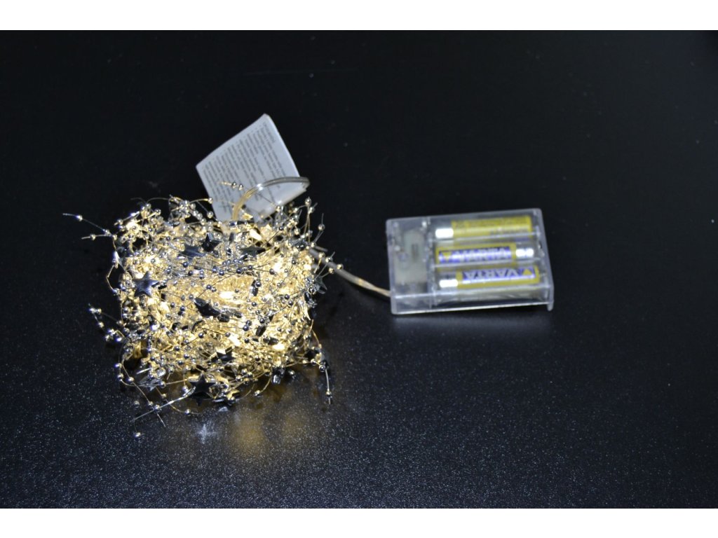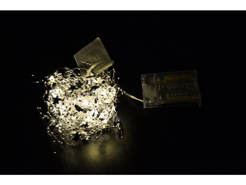 Vánoční osvětlení, girlanda na baterie, stříbrné hvězdičky,