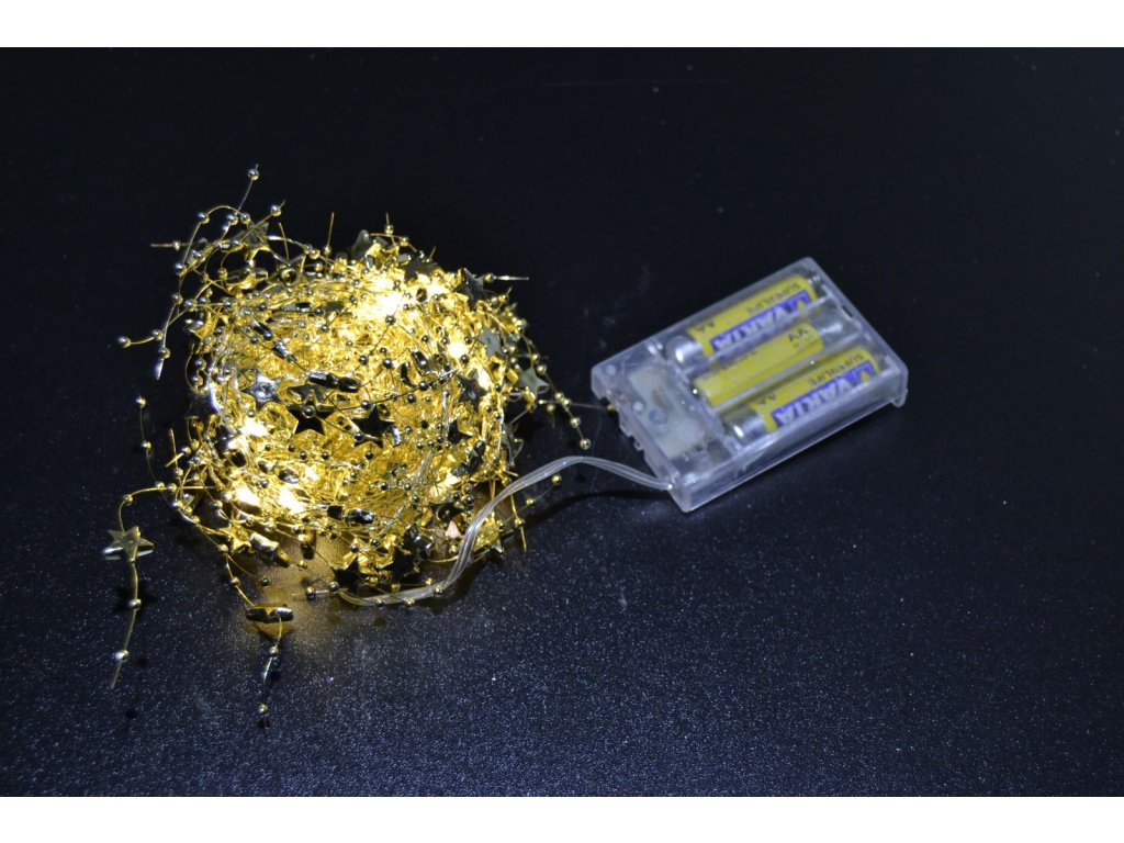 Vánoční osvětlení, girlanda na baterie, zlaté hvězdičky,