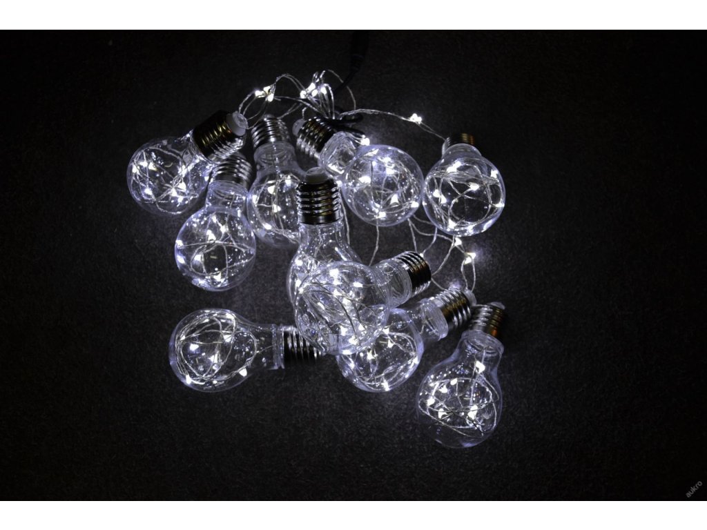 Osvětlení je velmi dekorativní. Na řetězu je 10 žárovek, z nichž v každé z nich je uvnitř umístěno 7 malých LED diod ve tvaru kapky.