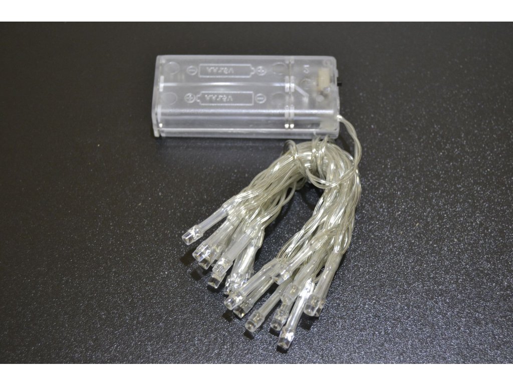 Na to tomto řetězu je 20 bílých LED diod na průhledném kabelu