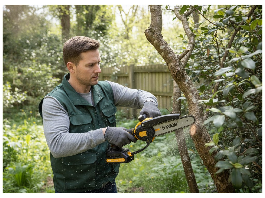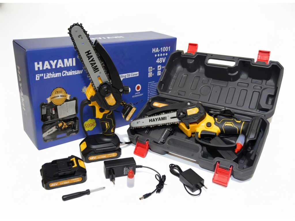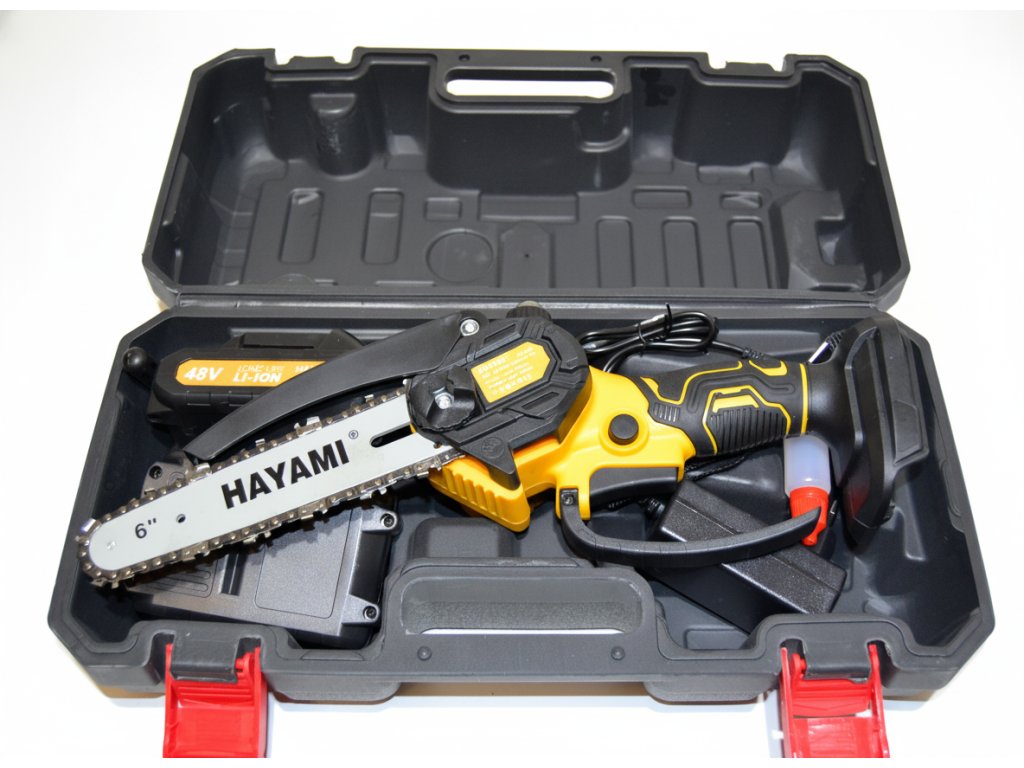 Ruční řetězová akumulátorová pila Hayami HA-1001 2 baterie 48/1,2Ah 6´´
