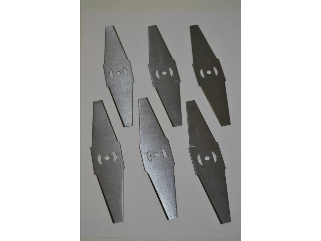 Balení obsahuje 6 ks ocelových nožů na sekání trávy a drobných křovin.