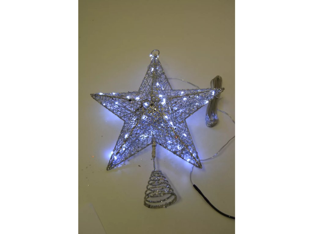 Hvězda je prostorová ( šíře cca 5 cm ), vodotěsná s možností zavěšení na okno nebo s pomocí přiloženého stojánku na špičku stromku