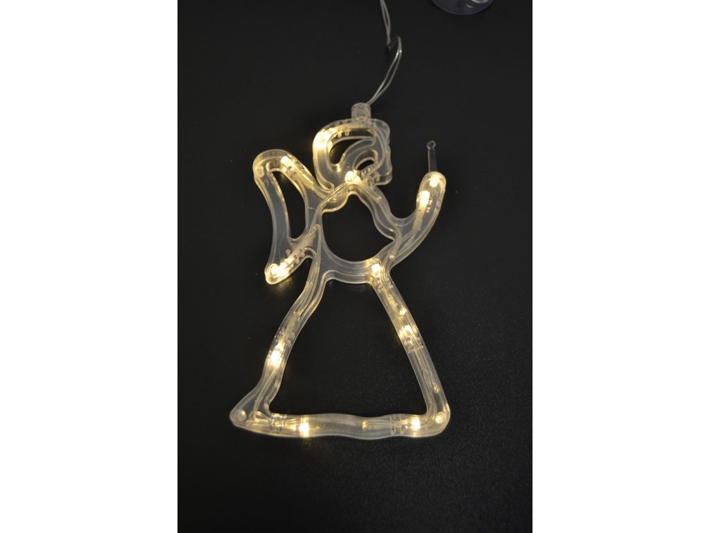 Závěsné bateriové vánoční osvětlení do okna anděl teple bílý
